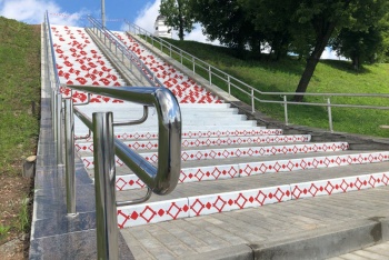 Выпускники Школы городских инициатив «Теплица» в июле 2018-го года реализовали очередной проект. На лестнице, ведущей к городскому пляжу в Подниколье появился орнамент. Авторы проекта решили добавить национального колорита в городское пространство.