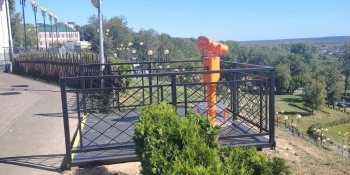 12 сентября 2025-го года В Могилеве вблизи лестницы в парк в Подниколье установили стационарный бинокль. В бинокль видны дома за Днепром, как будто в паре метрах от вас. Можно рассмотреть лица людей, которые с лестницы кажутся точками.