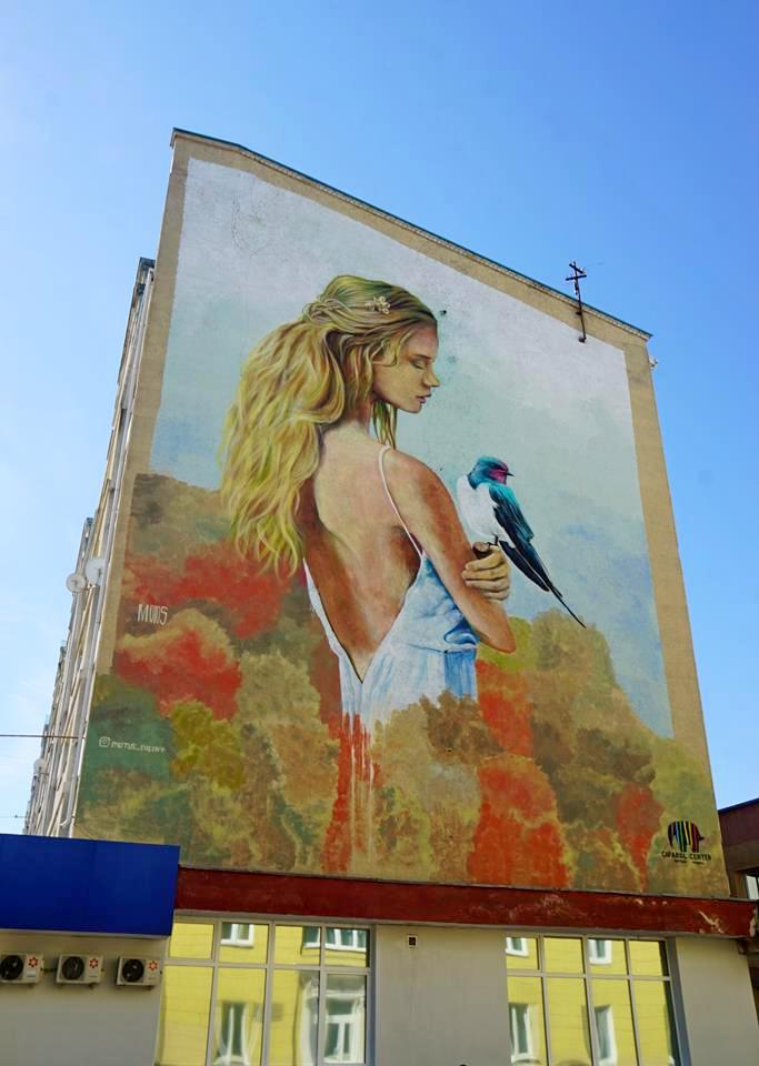 | Название | Мурал девушка с птицей |